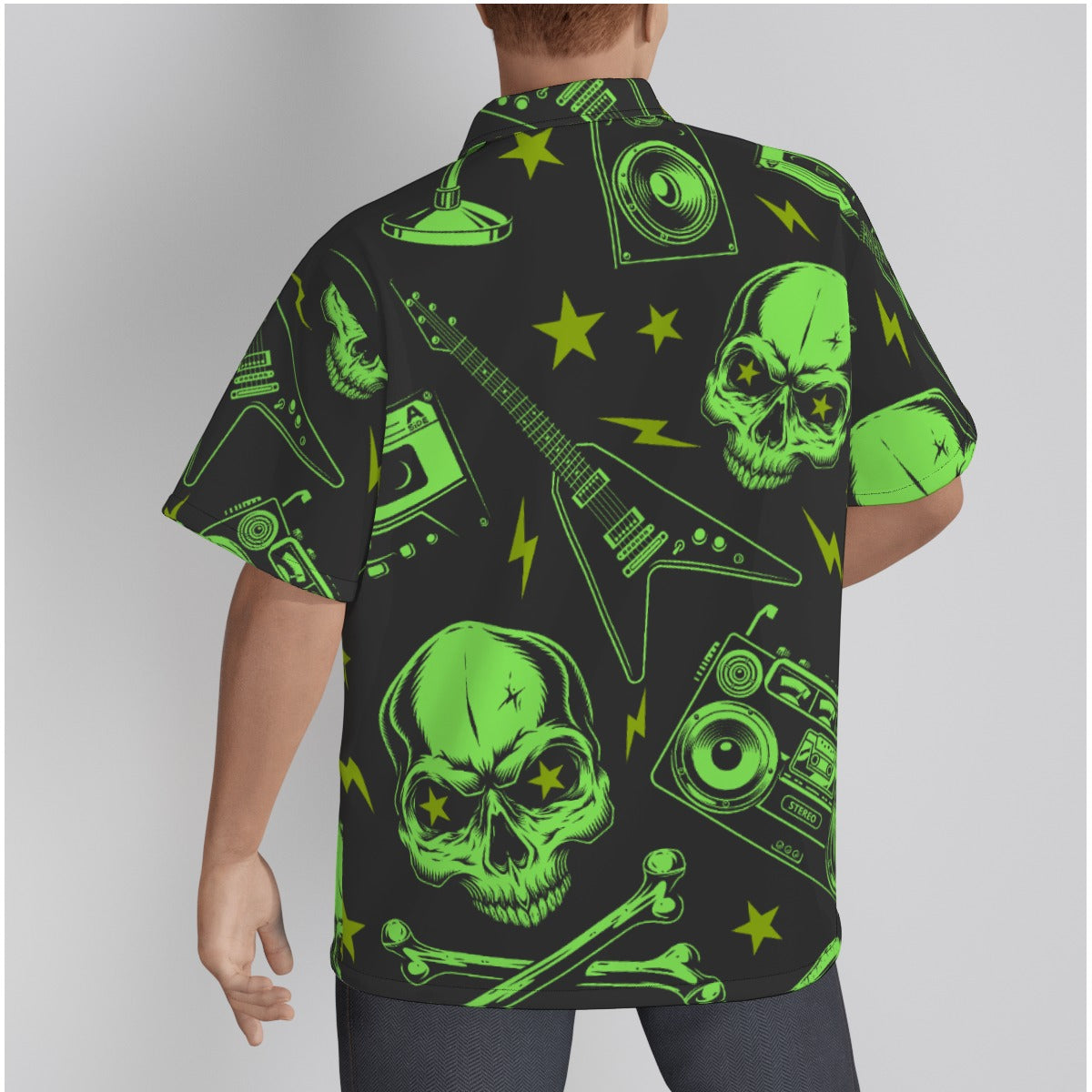 Unleash your inner rocker with the Skull Jam Hawaiian Shirt, a perfect blend of edgy style and tropical vibes. This classic Hawaiian shirt features a Roman collar and is crafted from a comfortable and breathable light fabric, ensuring you stay cool and pleasant in the hot summer.