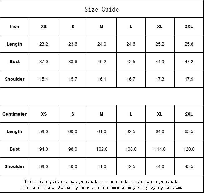 This size guide shows product measurements taken when products are laid flat. Actual product measurements may vary by up to 3cm.