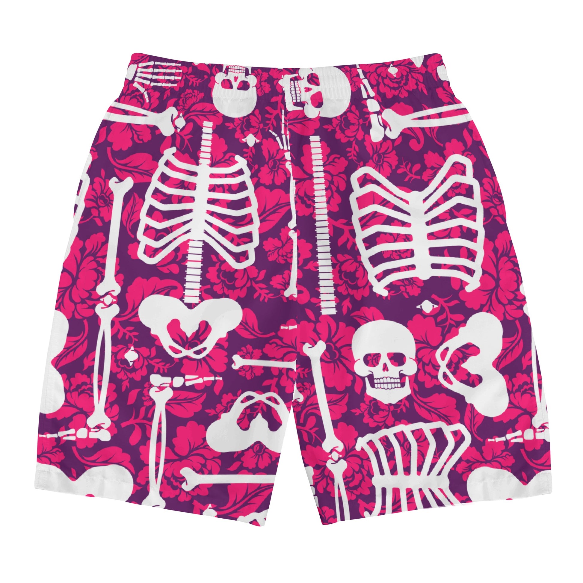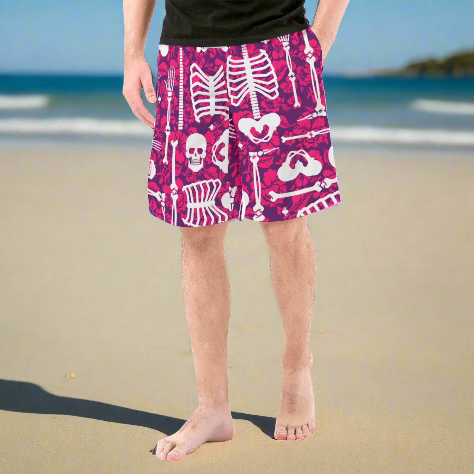 Make a splash with these stylish and comfortable board shorts from Beach Bones. These shorts are made from high-quality polyester fabric that is soft, breathable, and quick drying. The drawstring rope waist allows you to adjust the fit to your liking, while the side pockets provide ample space for your essentials. The shorts feature a cool and colorful design of bones and skulls, giving them a fun and edgy vibe. Whether you're surfing, swimming, or lounging, these shorts will keep you looking and feeling great. They are also easy to care for, just toss them in the washer and dryer and they're ready for your next adventure. These shorts are a unique and thoughtful gift for any man who loves the beach and bones. Order yours today and get ready to rock the waves with Beach Bones.