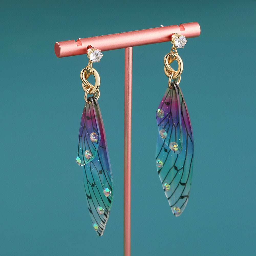 Butterfly Cicada Wing Gradient Earrings are a stunning accessory that will make you shine. These earrings feature a unique design of butterfly and cicada wings, creating a beautiful gradient effect. The wings are made of high-quality resin, which is lightweight and durable. The metal accessories are plated with alloy, which is safe for sensitive skin and won’t tarnish easily. These earrings are suitable for any occasion, whether you want to dress up or down. They will add a touch of elegance and charm to your outfit, and make you stand out from the crowd. These earrings are also a lovely gift for someone special, such as your mother, sister, friend, or lover. They will be delighted to receive these exquisite earrings on their birthday, anniversary, or any other special day. These earrings are a must-have for any fashion lover, and they will make you feel like a fairy. Don’t miss this chance to get these amazing earrings and show off your style. Order now and enjoy the compliments!