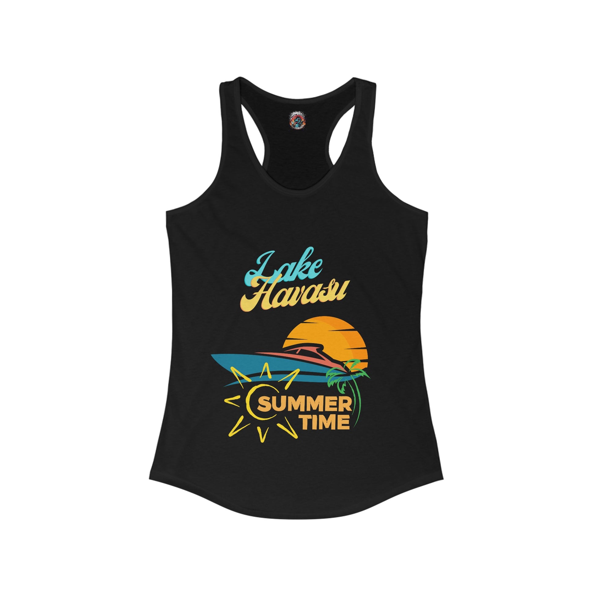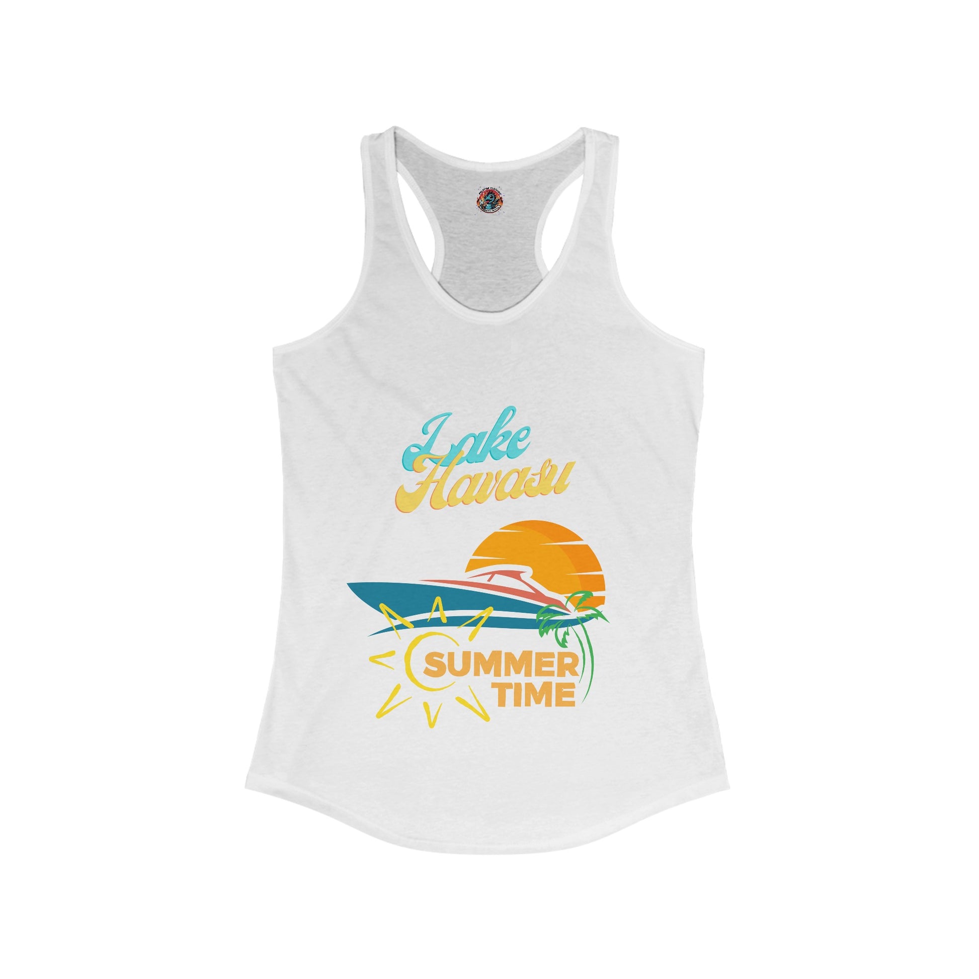 Boost your active lifestyle with the Lake Havasu - Summertime Women's Ideal Racerback Tank. This top-notch, eye-catching tank is a must-have for making a bold statement.