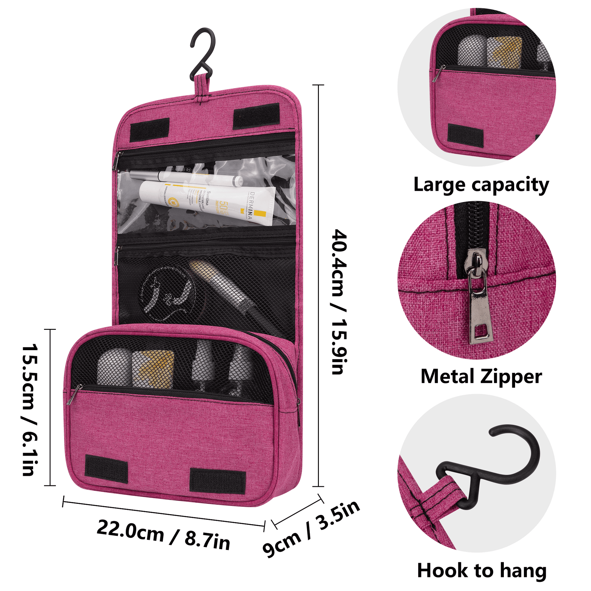This cosmetic travel bag is the perfect companion for your beauty essentials. It features a lovely rose design that adds a touch of elegance and charm to your style. The bag is made of thickened canvas fabric, which is sturdy and durable, and can protect your cosmetics from dust and moisture. The bag is neatly organized by one main compartment with multiple pockets, so you can store your brushes, makeup, skincare products, and accessories in an orderly manner. The bag also has built-in hooks that can hang your toiletry set on a towel rack, hook, or door handle, making it convenient to use and access. The bag is waterproof, stain resistant, easy to wash, and not easy to wrinkle, so you can keep it clean and fresh for a long time. The bag is suitable for putting into luggage when traveling, as well as for daily use as an organizer. With this cosmetic travel bag, you can always look your best wherever you go.
