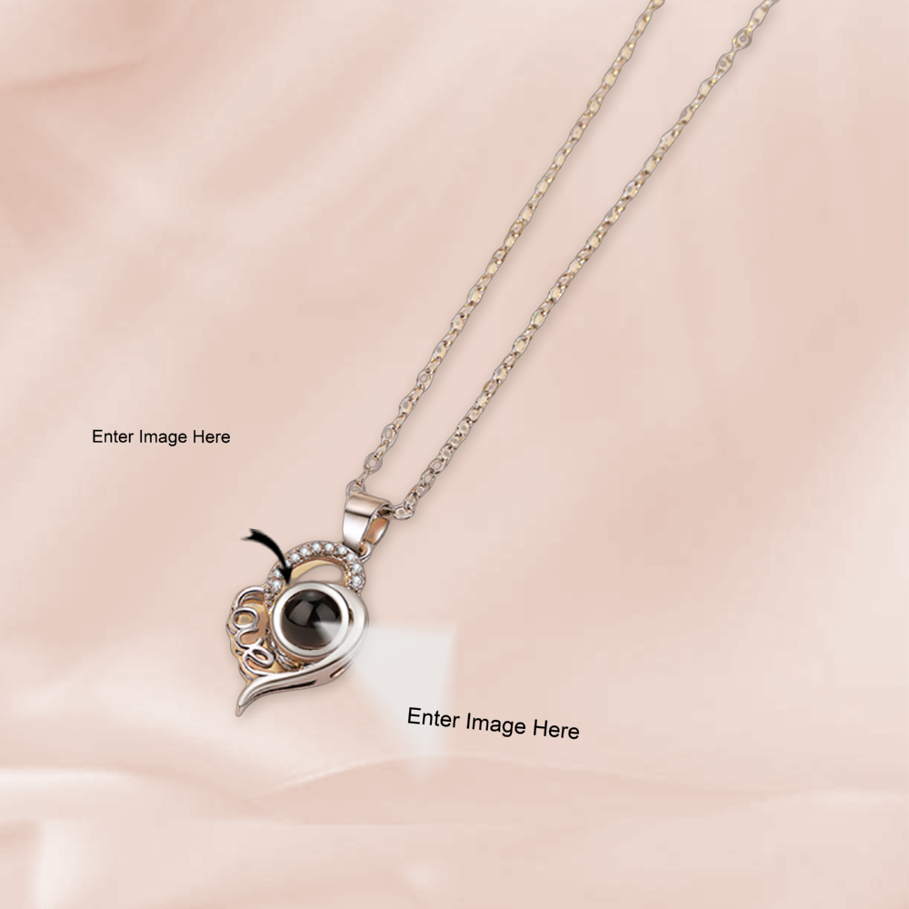 Custom Photo Projection Necklace Heart Shape Pendant Clavicle Chain