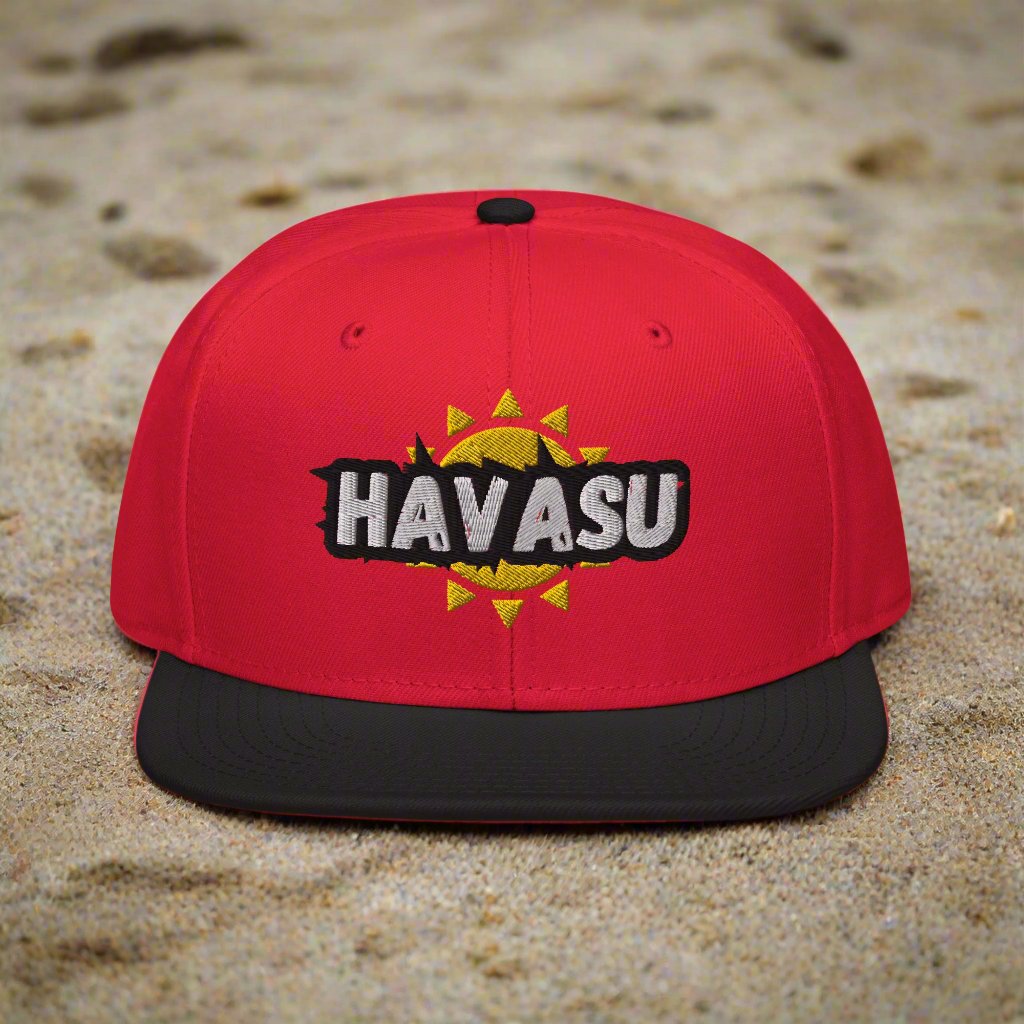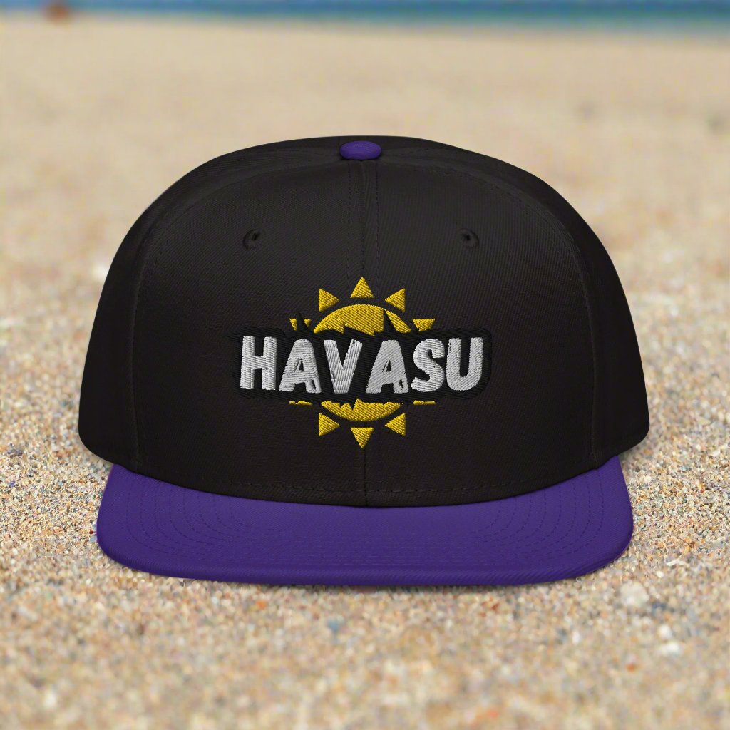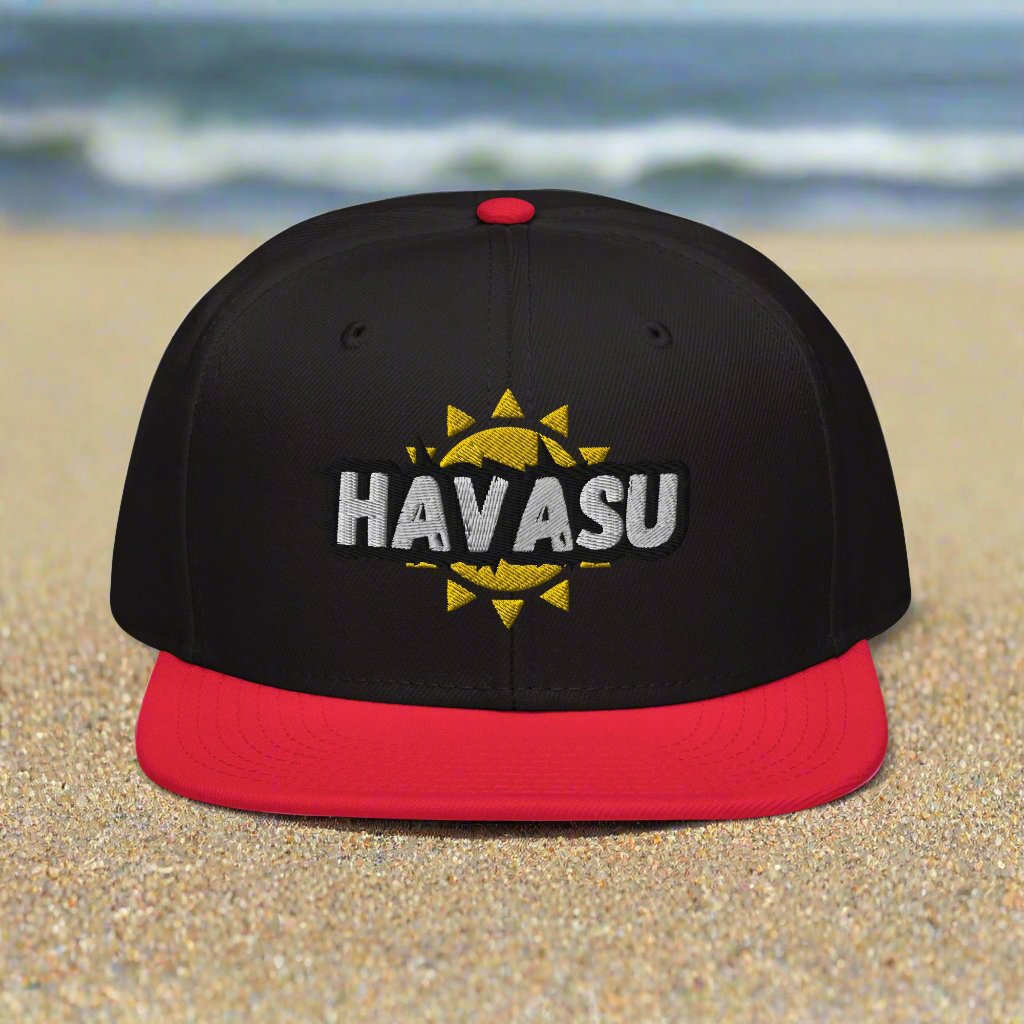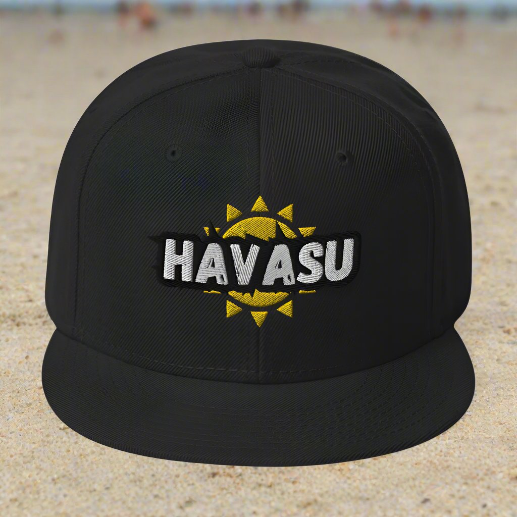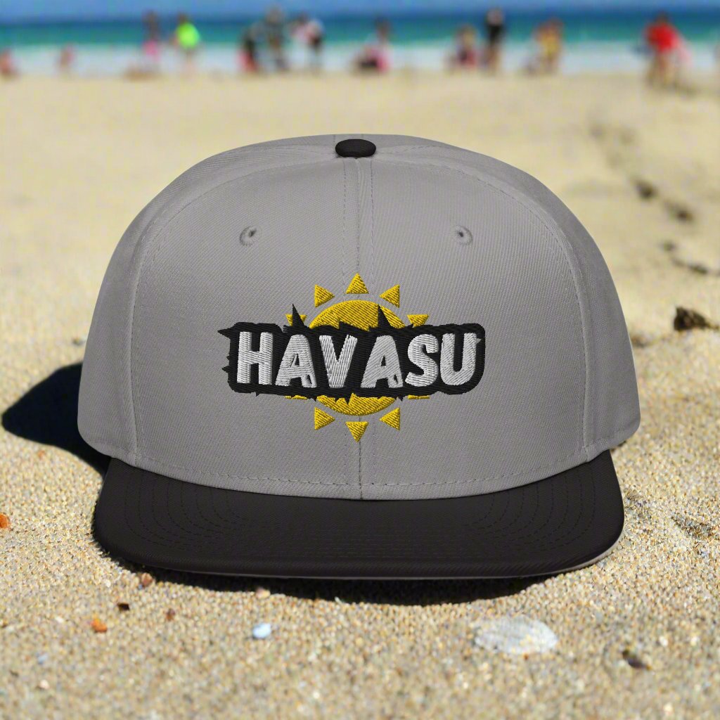 Discover the snapback hat that meets your dreams! The “Havasu Sun” is more than just a hat; it’s a piece of Lake Havasu’s vibrant spirit. Perfect for those sun-soaked adventures, this hat boasts a structured, high-profile design with a flat visor and a discreet grey under visor, adding a touch of elegance to your look.
