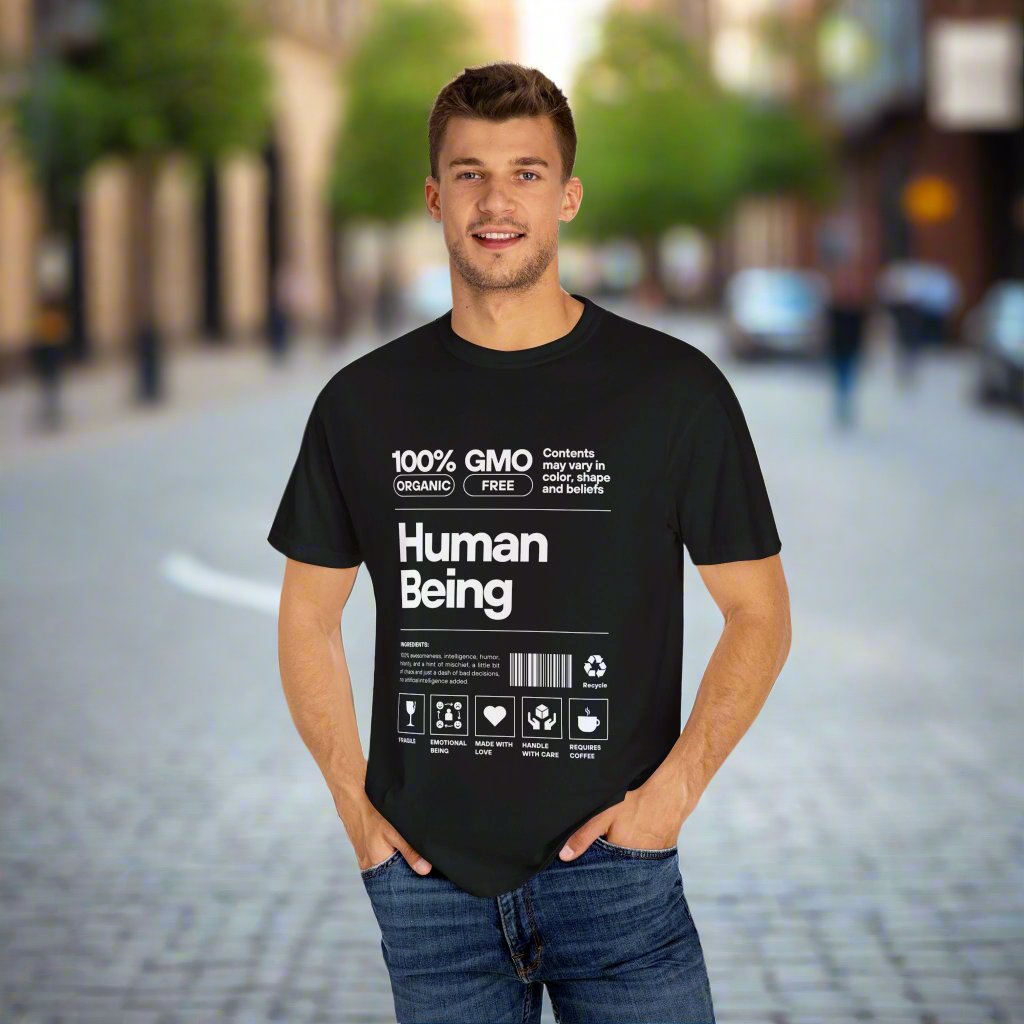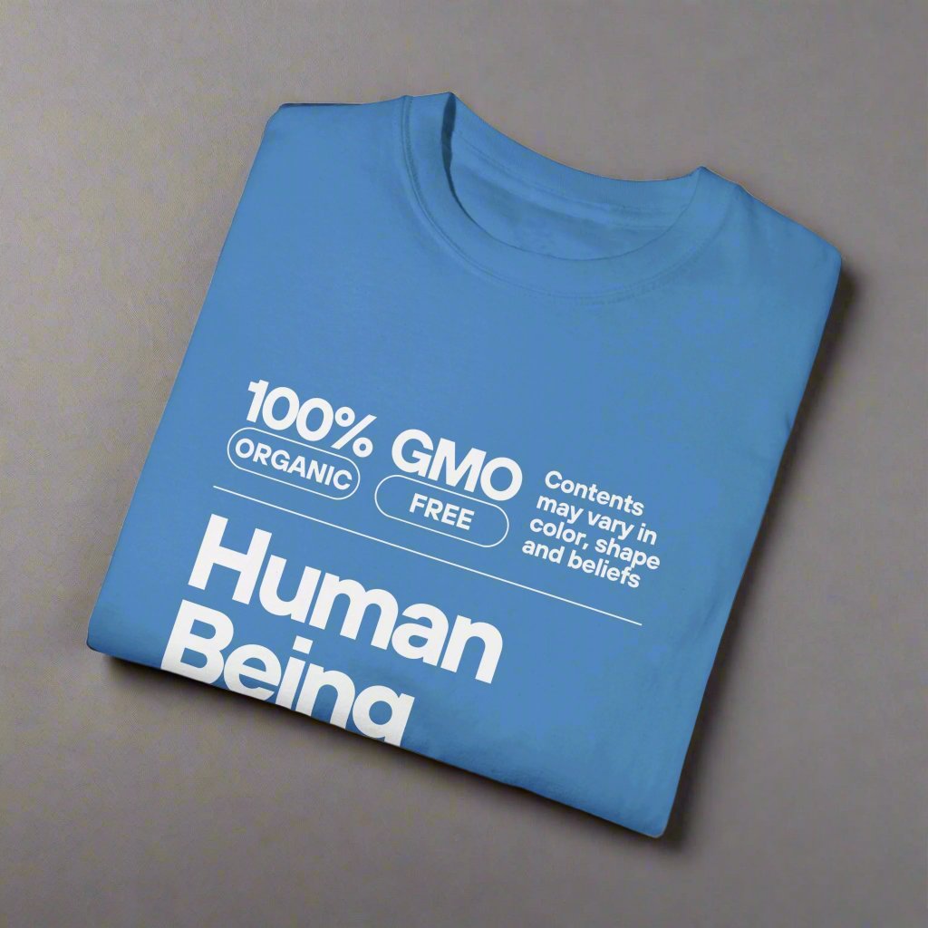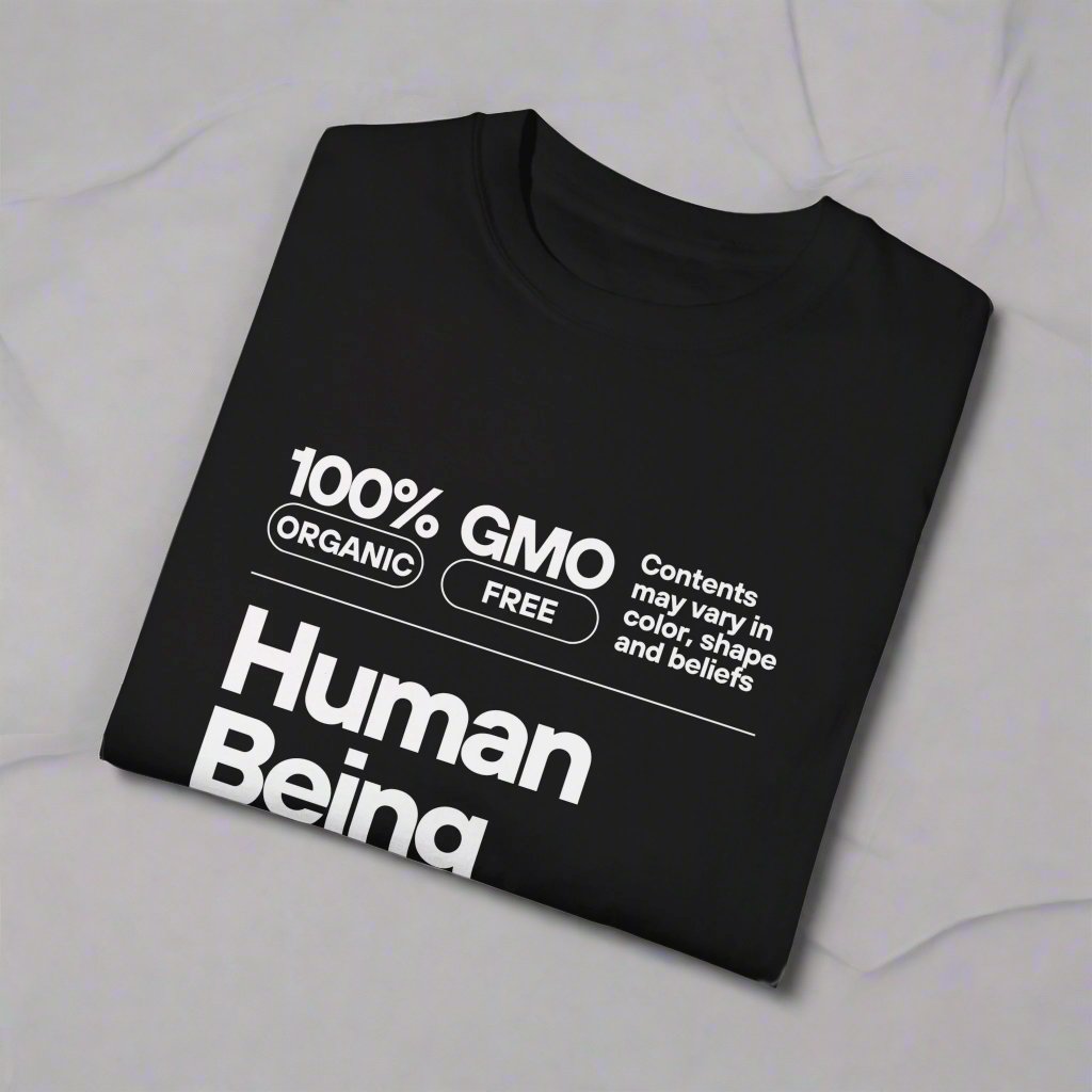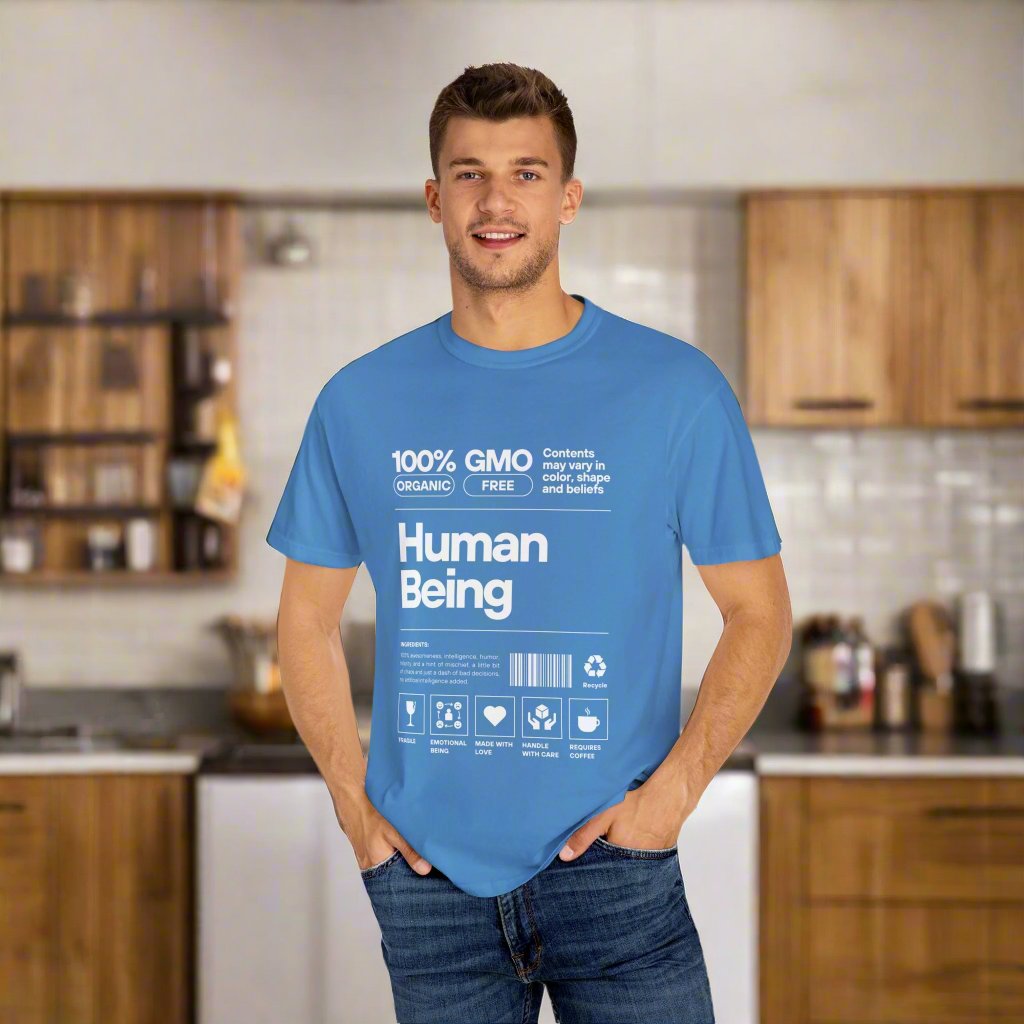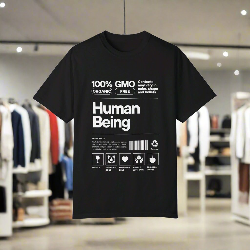 Introducing the latest must-have in every Homo sapiens’ closet: the “Human Being” garment-dyed t-shirt by Comfort Colors! Are you 100% organic and GMO-free? Then why not dress like it? This isn’t just any ordinary tee; it’s a conversation starter, a statement piece, and quite possibly your new best friend.