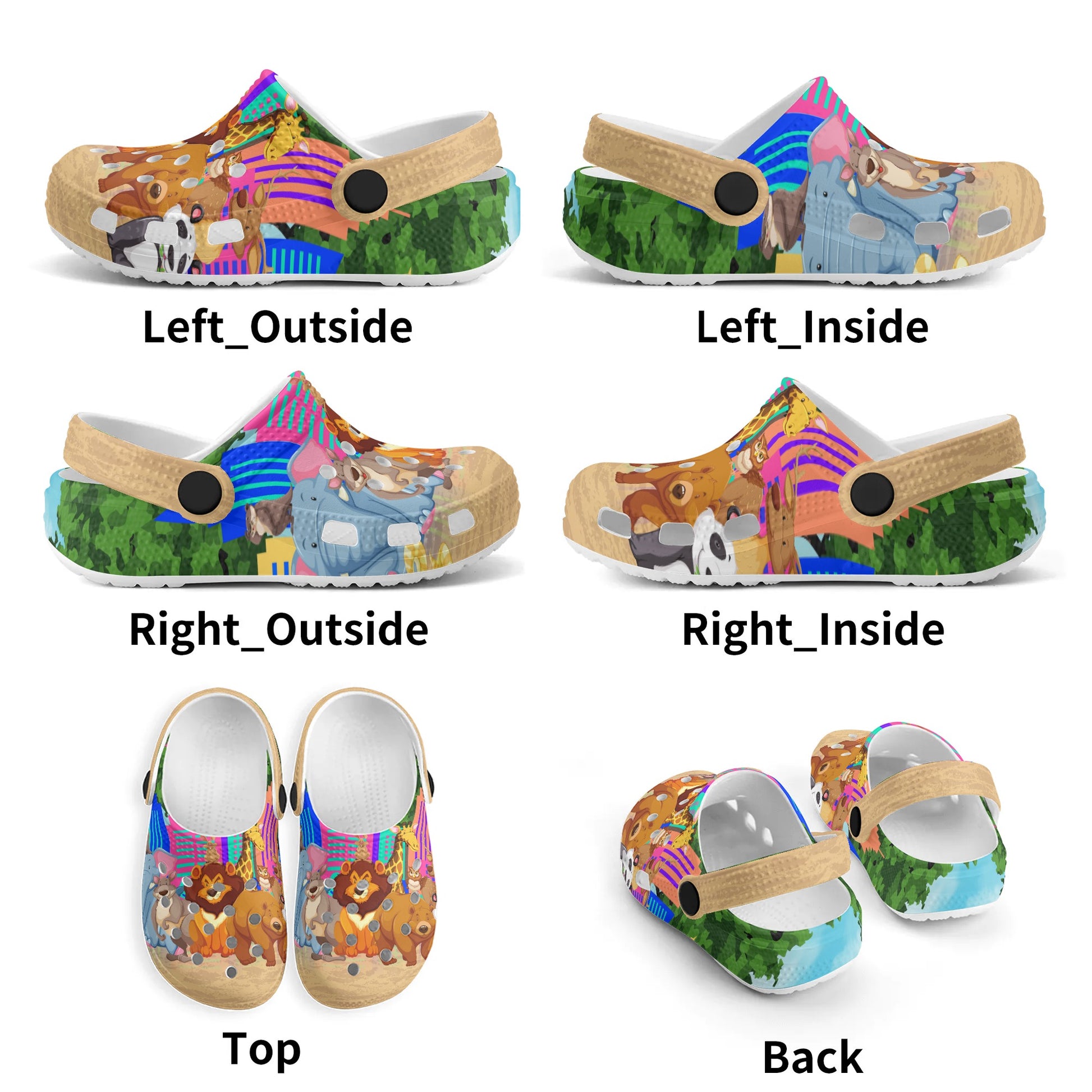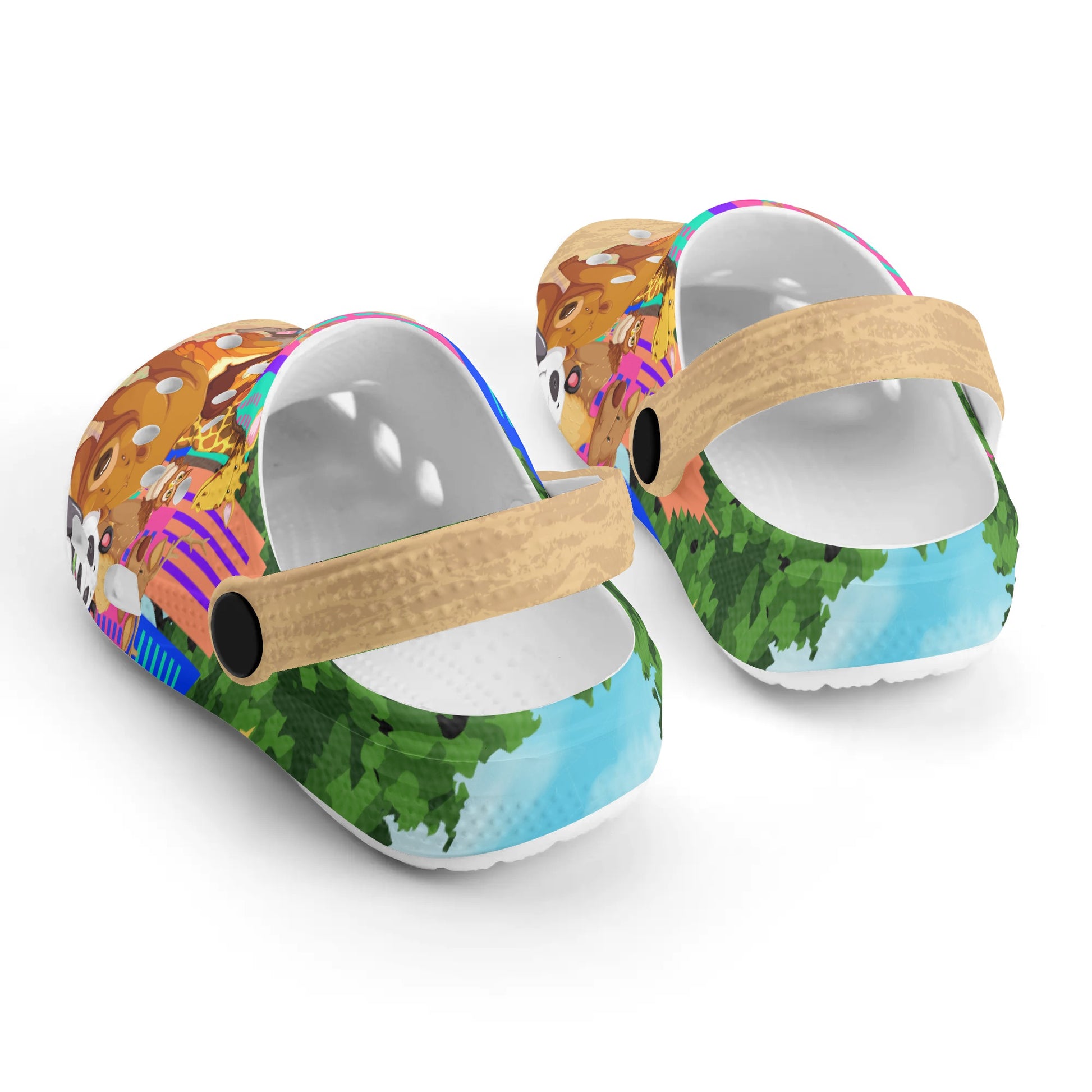 - Custom all over printed sandals featuring vibrant animal designs like lions, giraffes, pandas and more.