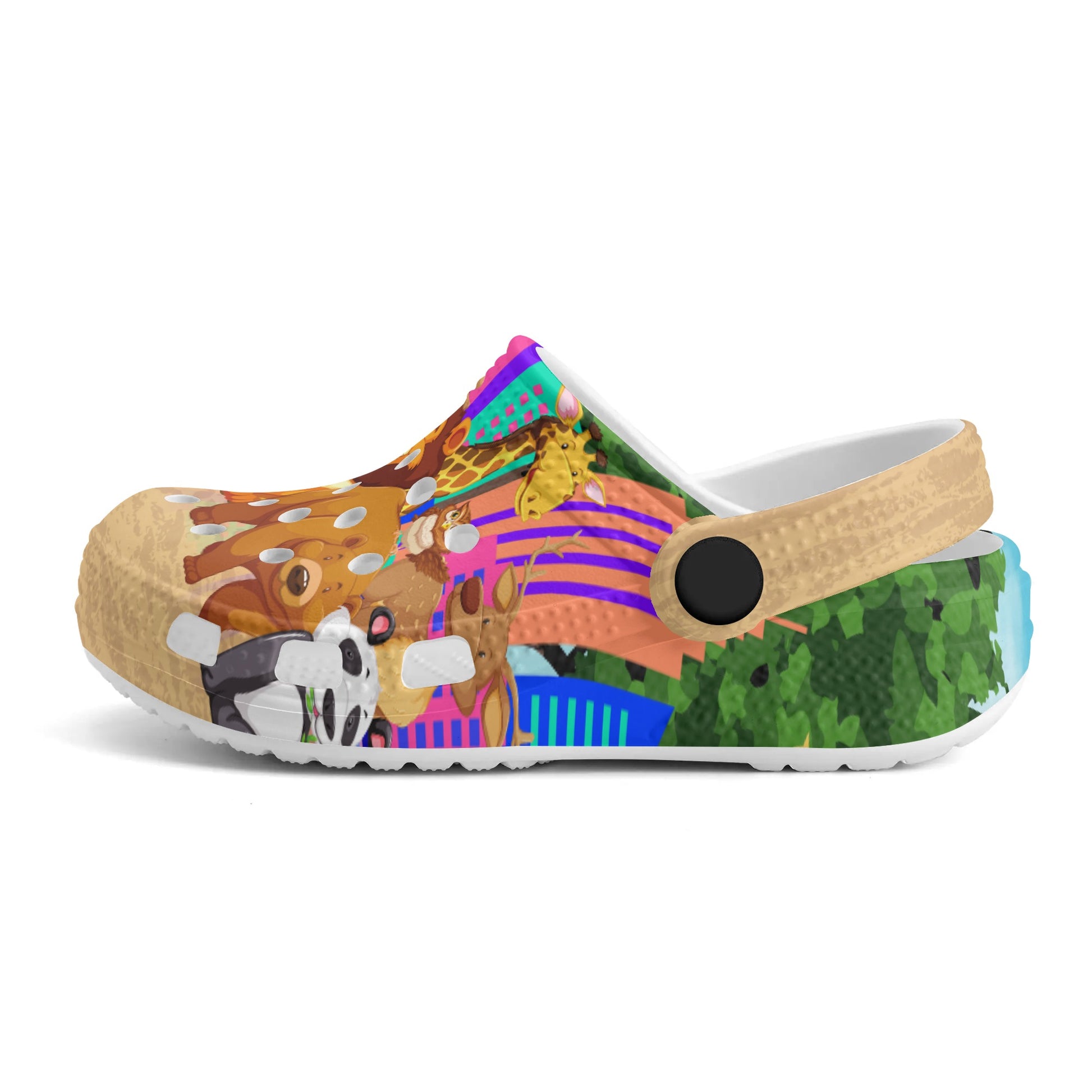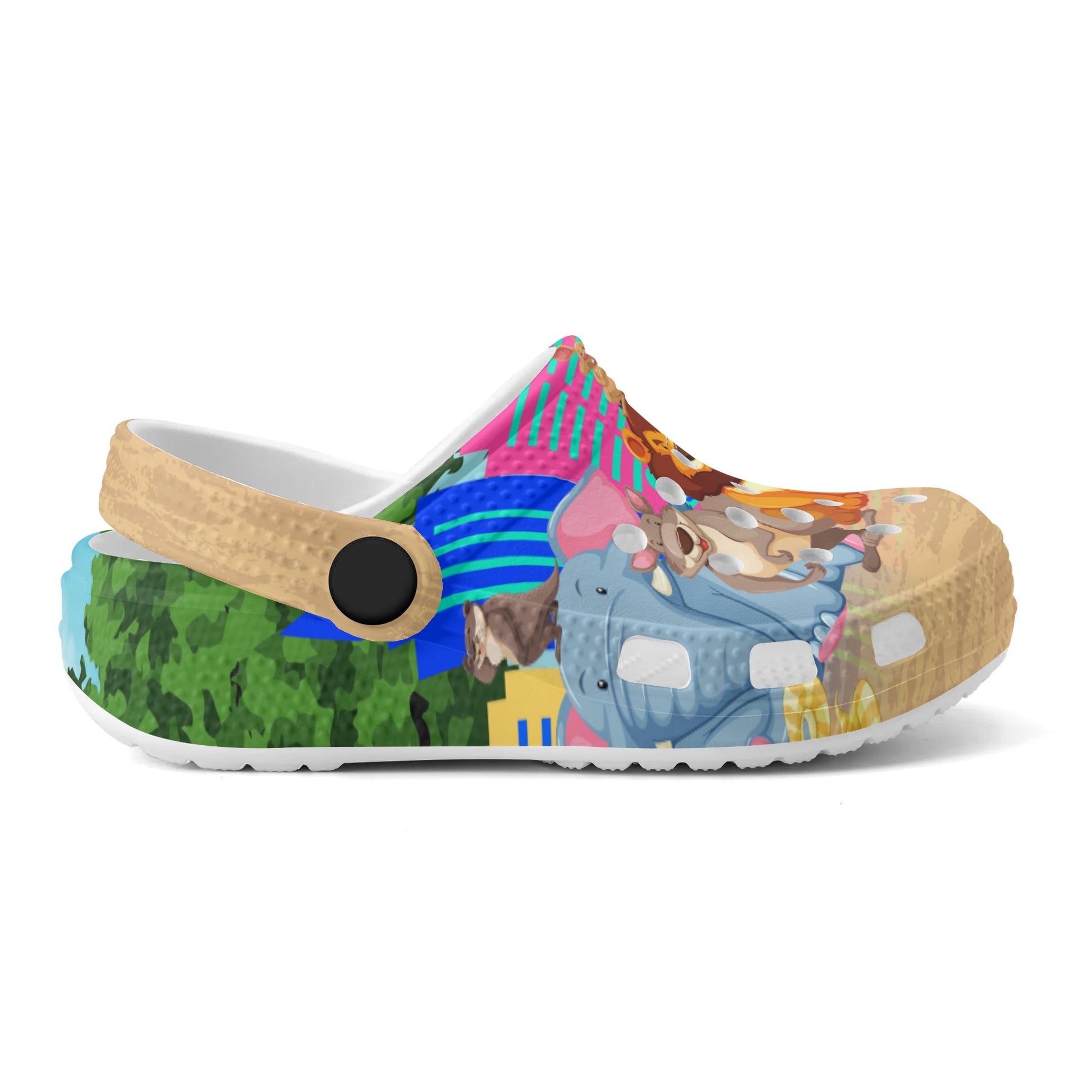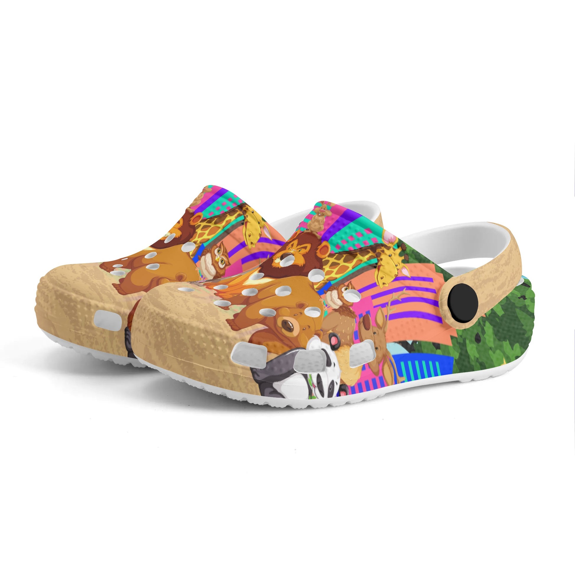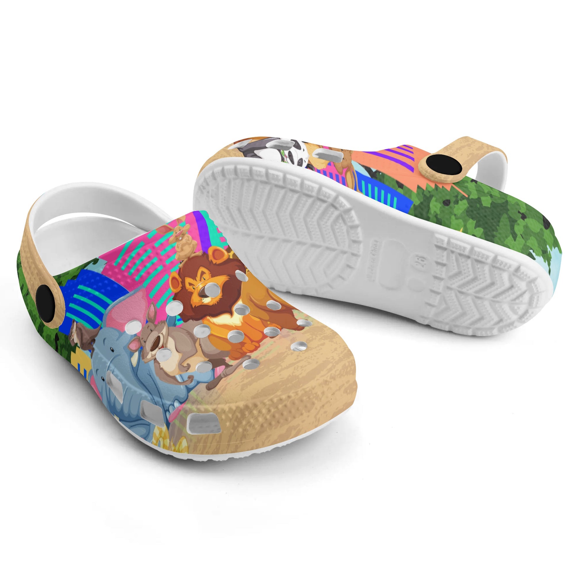 Made for kids who want to add some wild style to their wardrobe, these printed clogs are perfect for everyday wear. The vibrant colors and fun animal designs will make your child smile with every step. Give their feet a walk on the wild side!