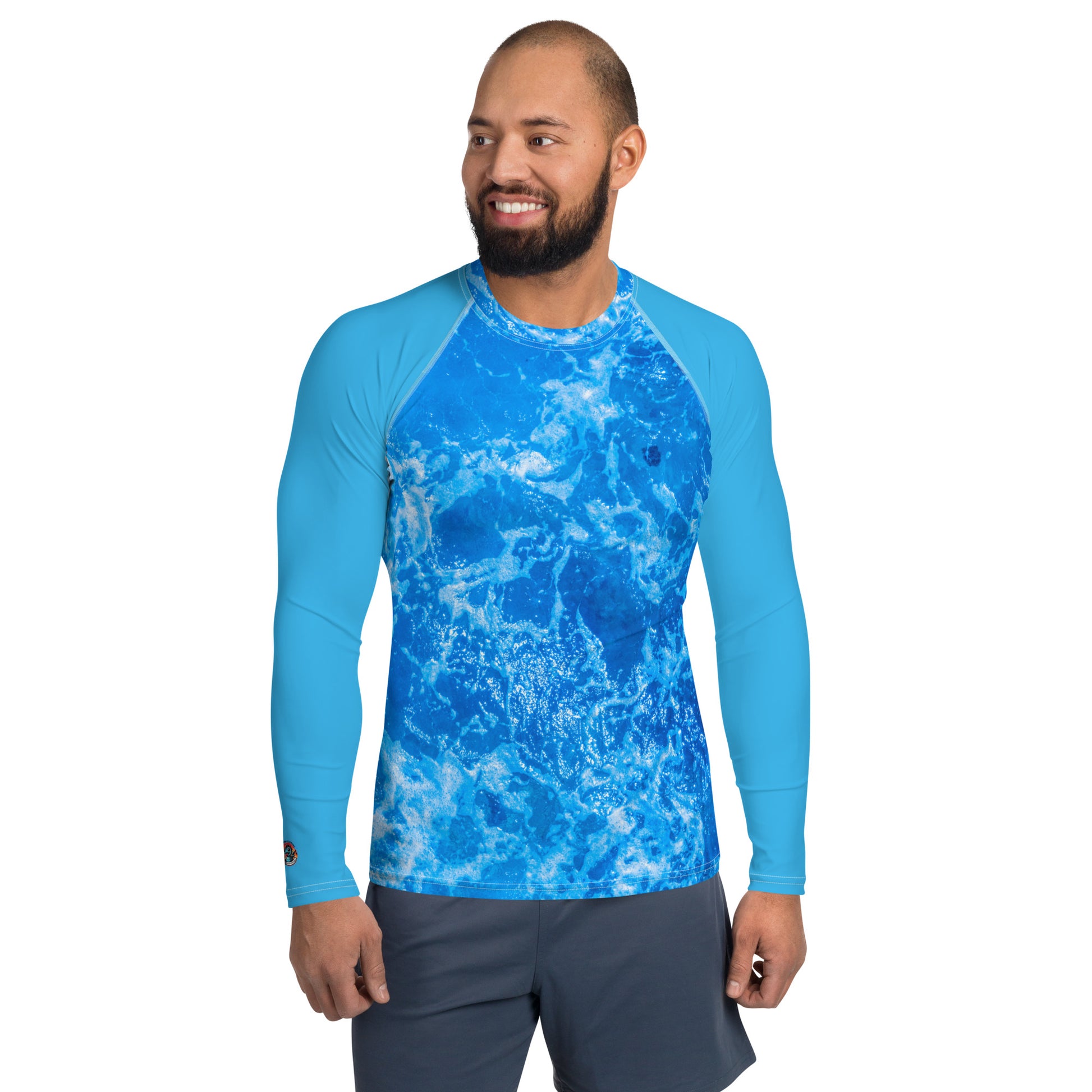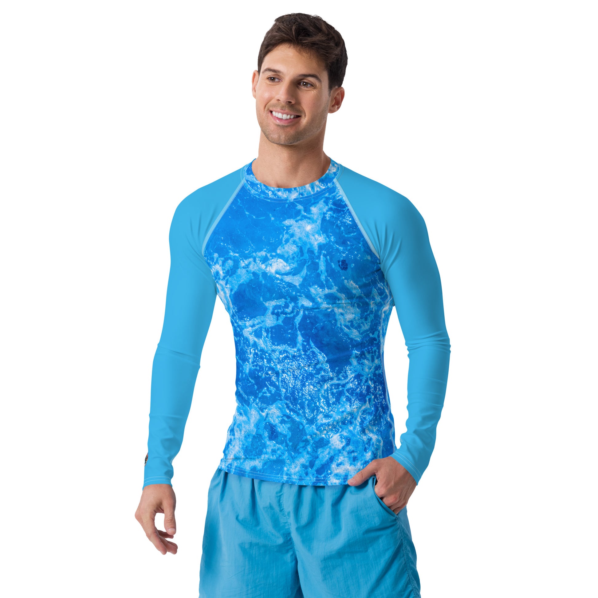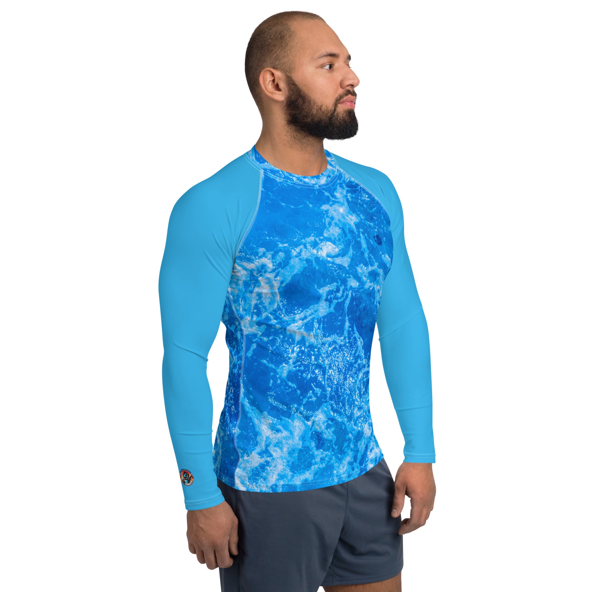 Conquer the elements in style with the Men's Aqua Ripples Rash Guard - your ultimate protection against the sun, wind, and sand.