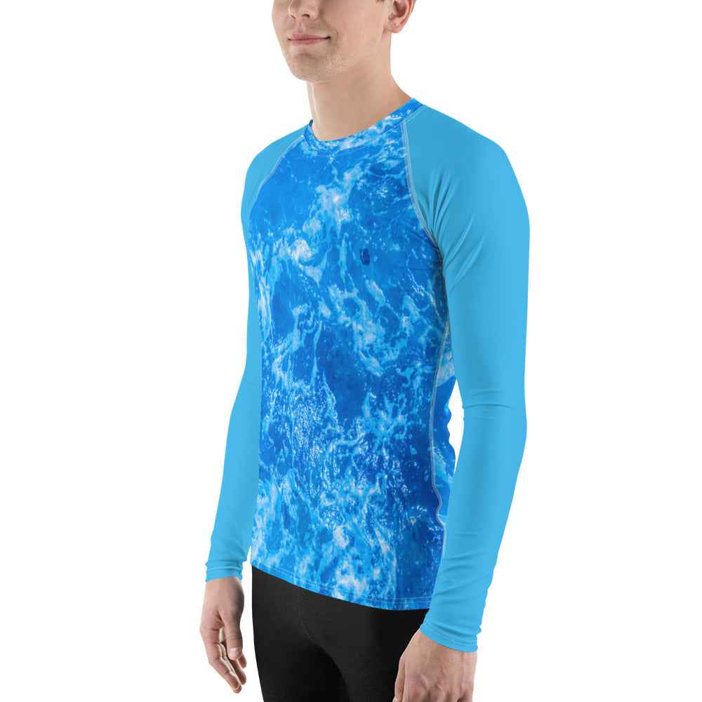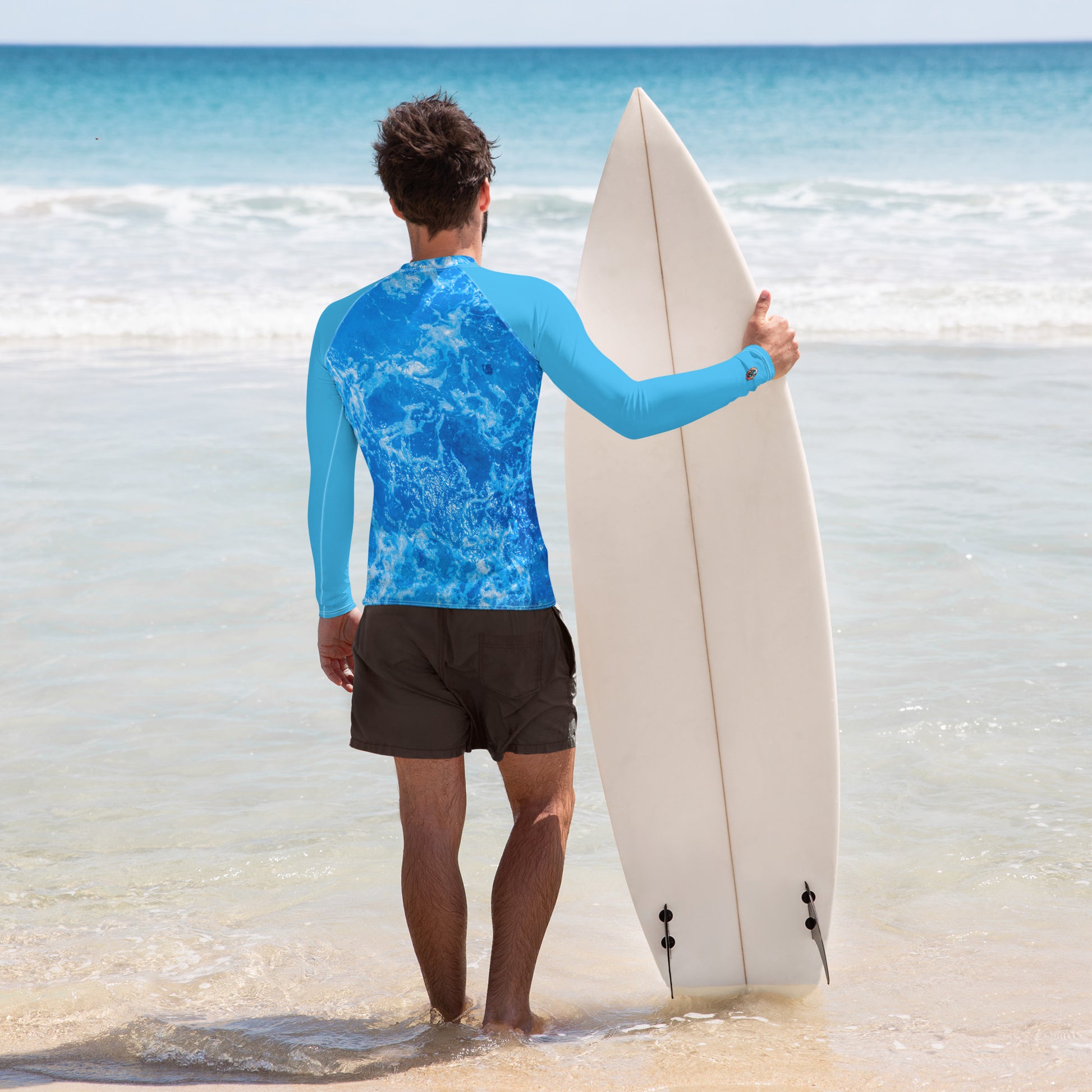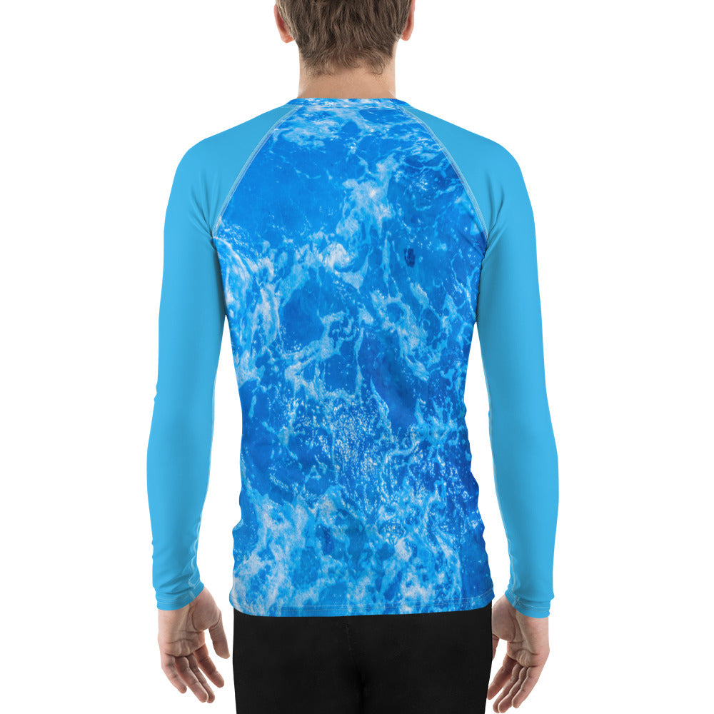 Conquer the elements in style with the Men's Aqua Ripples Rash Guard - your ultimate protection against the sun, wind, and sand.