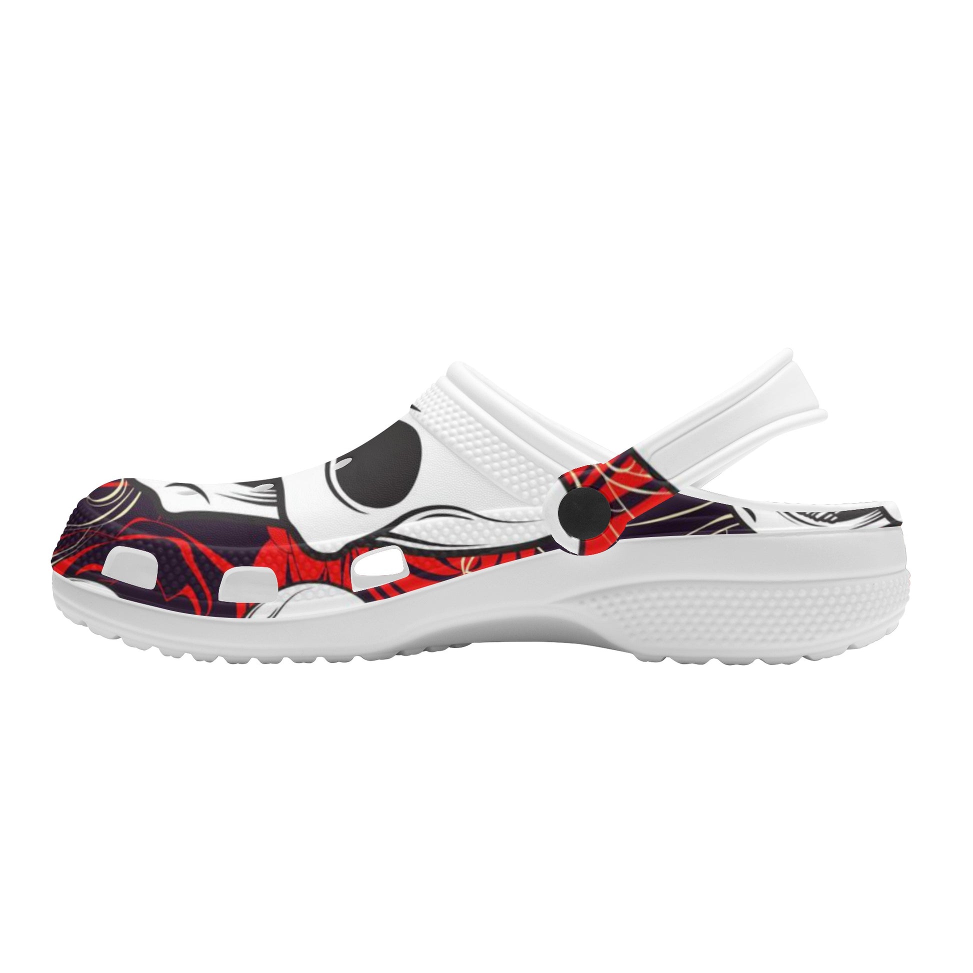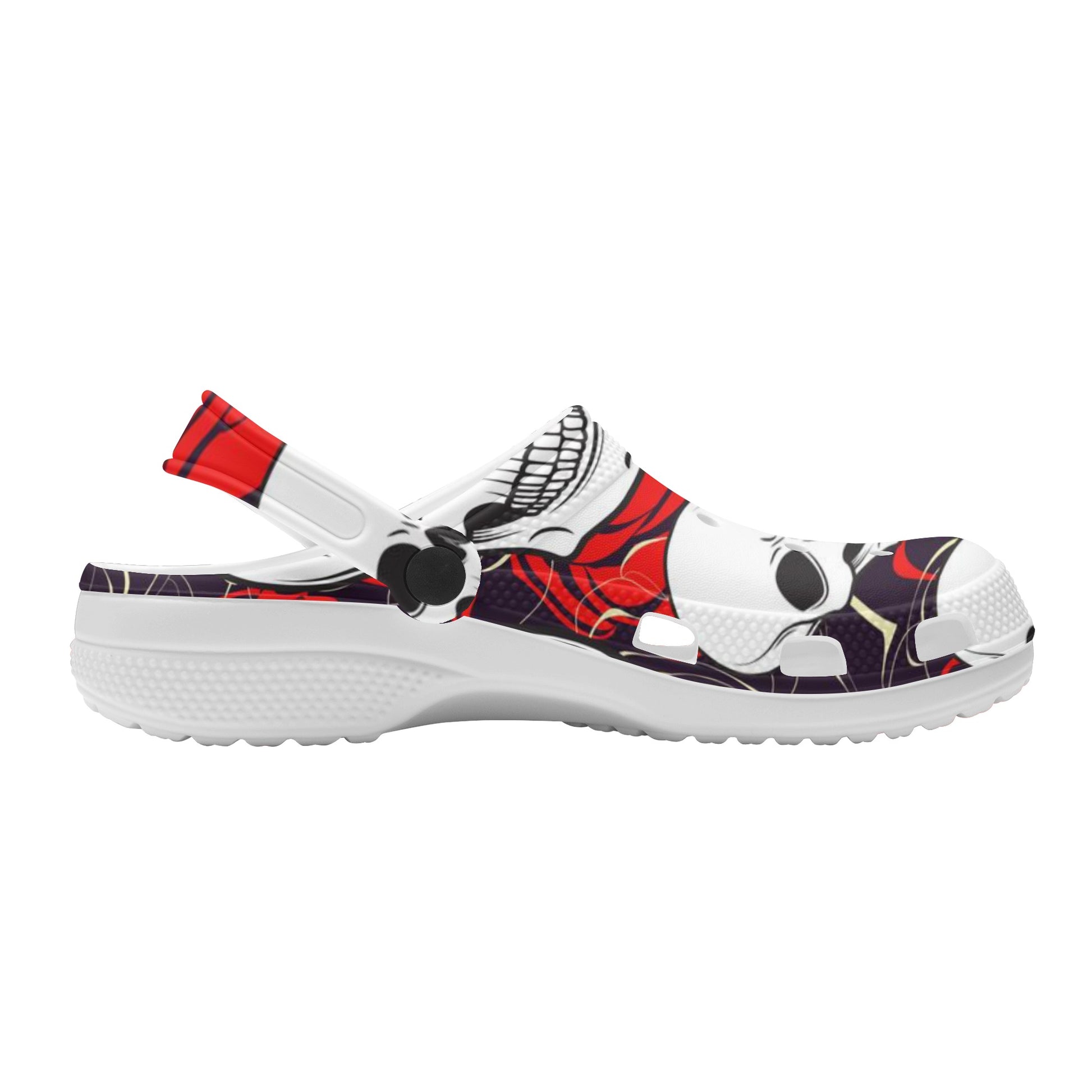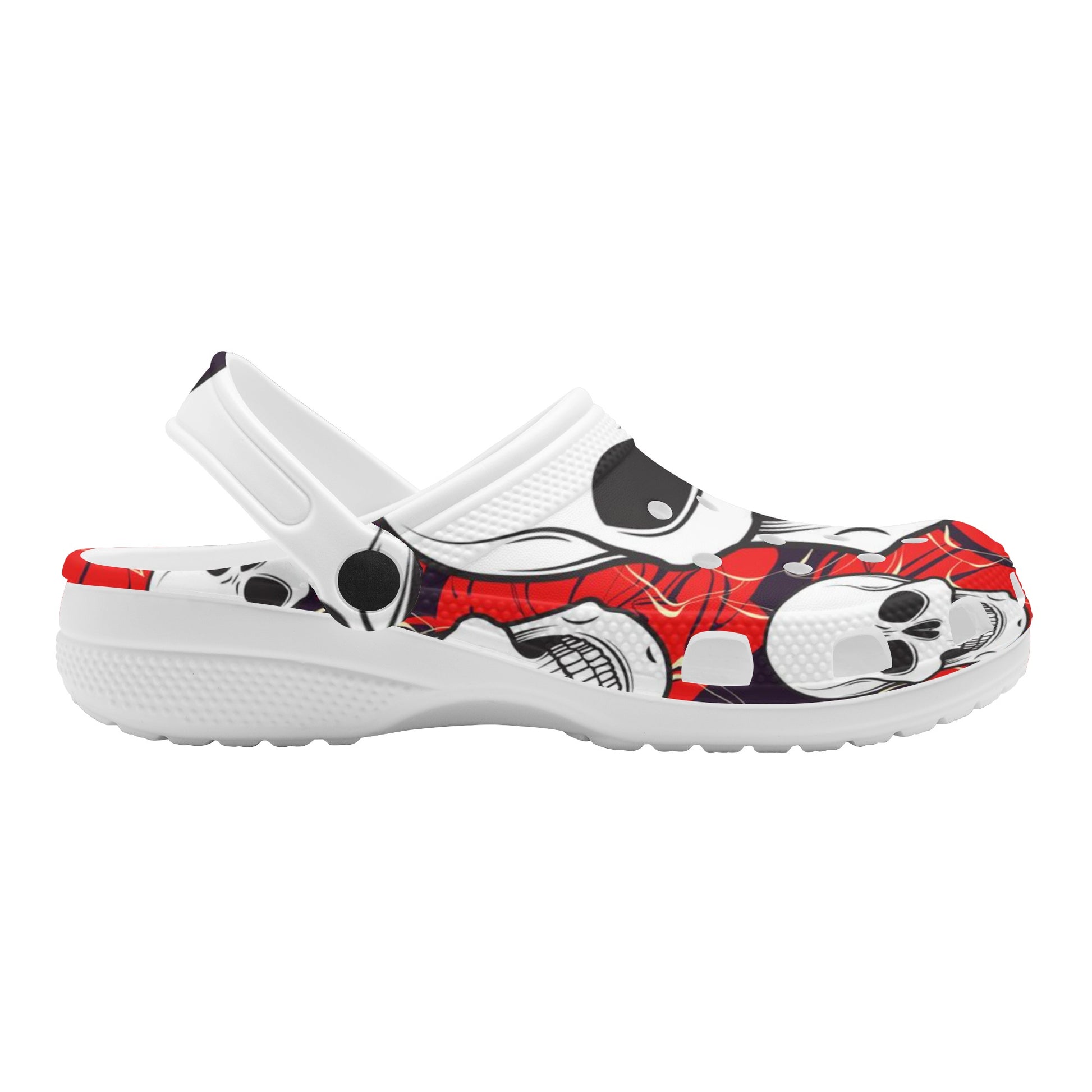 Step into the world of comfort with our Men's Skulls clogs – where style meets coziness! Made from the brightest white EVA foam and sporting a design that's more aerated than a block of Swiss cheese, these clogs are your canvas for charm personalization. They come with built-in air conditioning – thanks to those nifty ventilation ports – and they're quick to say goodbye to water. Plus, the heel straps swivel better than a disco dancer, ensuring your feet stay put. Get ready to rock the Classic Skull design, a sandal that's bound to be the talk of both the gents and the ladies!