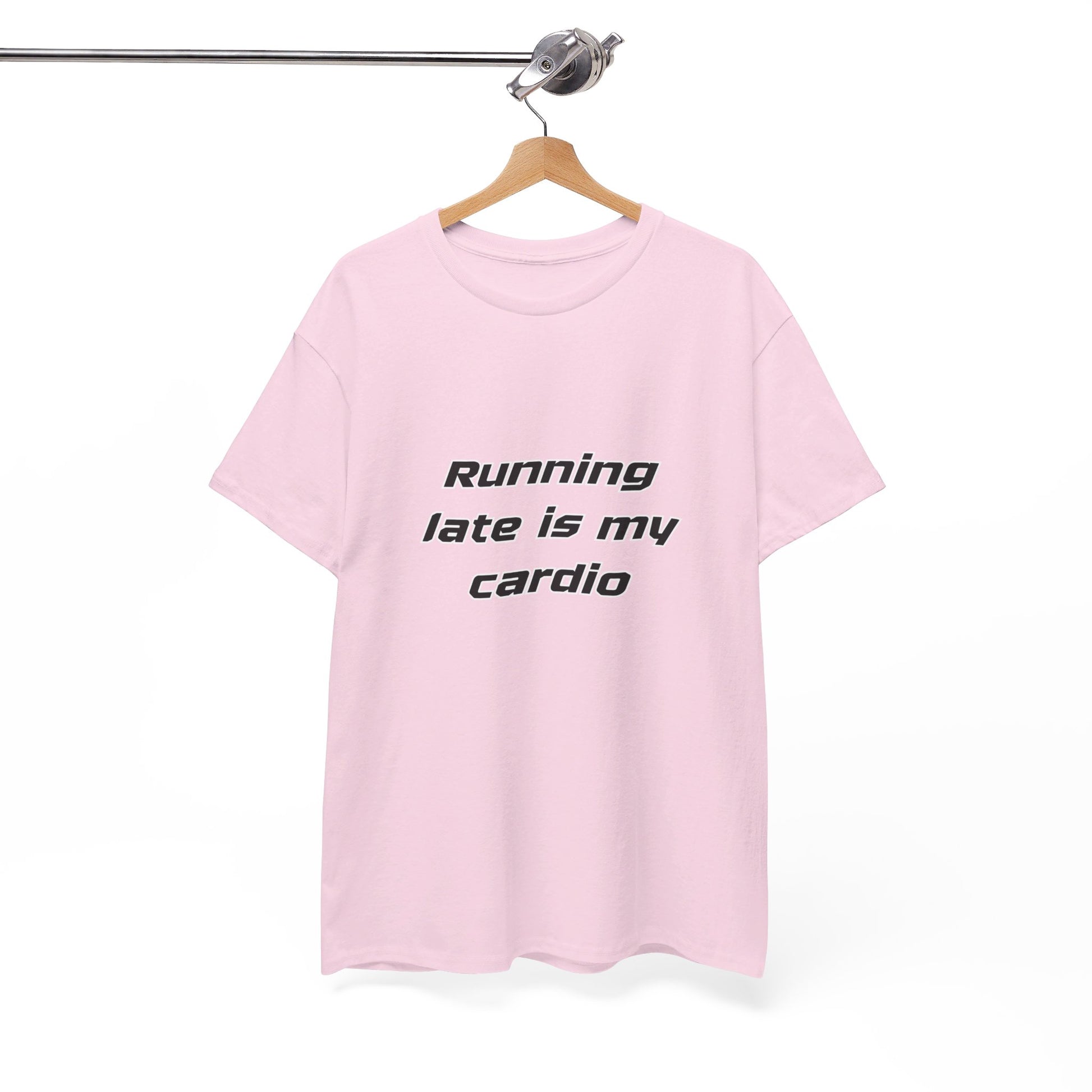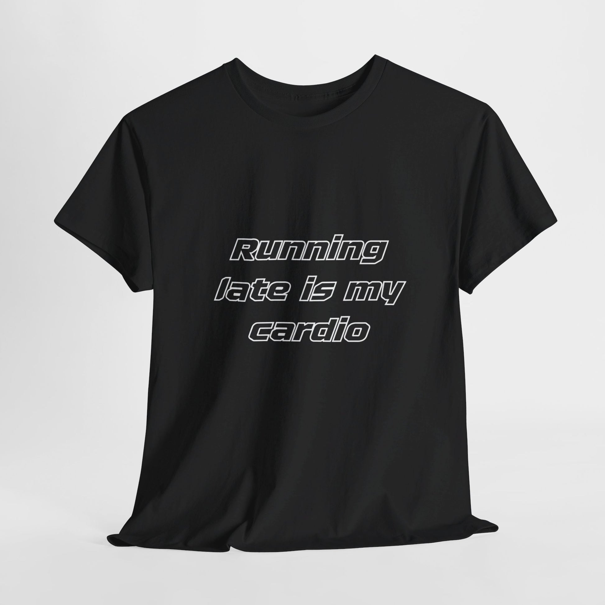 Don't just run late - run late in style. Slip into the "Running Late Is My Cardio" heavy cotton tee and let the world know that your fitness routine is entirely procrastination-based.