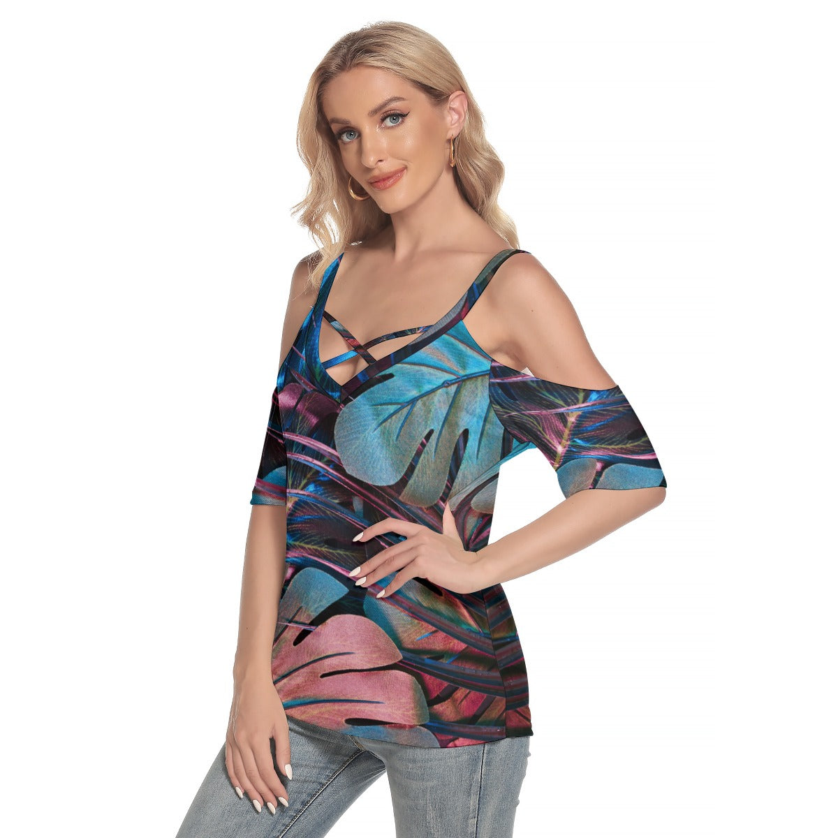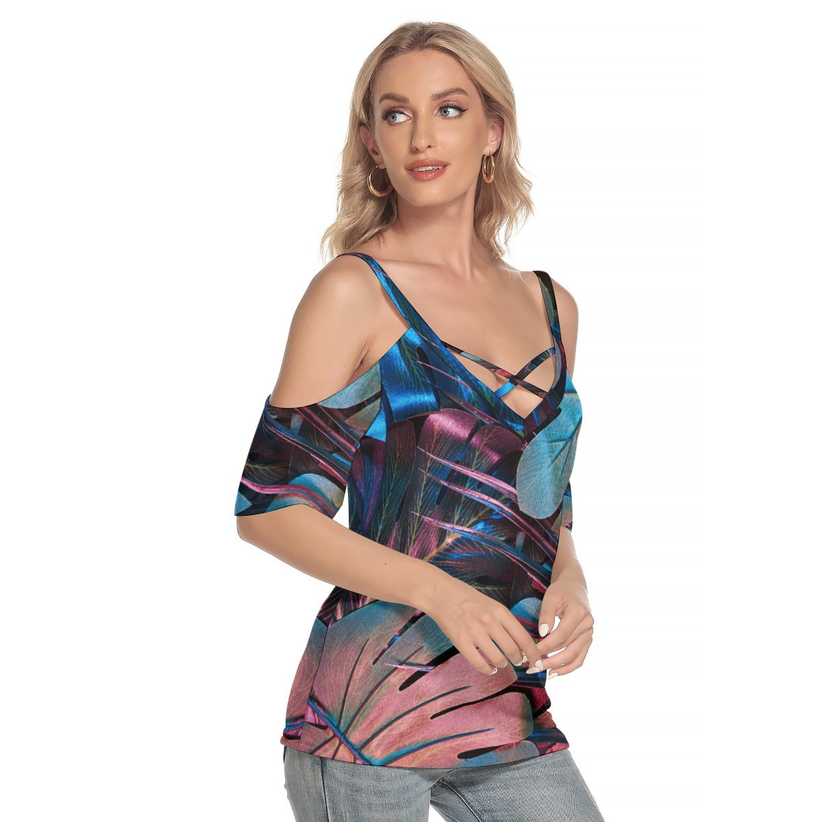Women's Cold Shoulder T-shirt with Criss Cross Strips